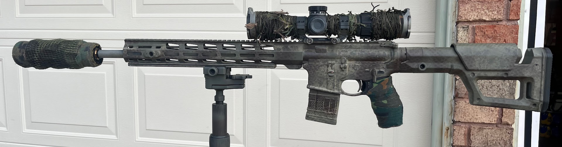 The Final Touches: No long-range AR is complete without support and sound suppression. I added a Warne Bipod and, of course, the Trash Panda suppressor from Q.